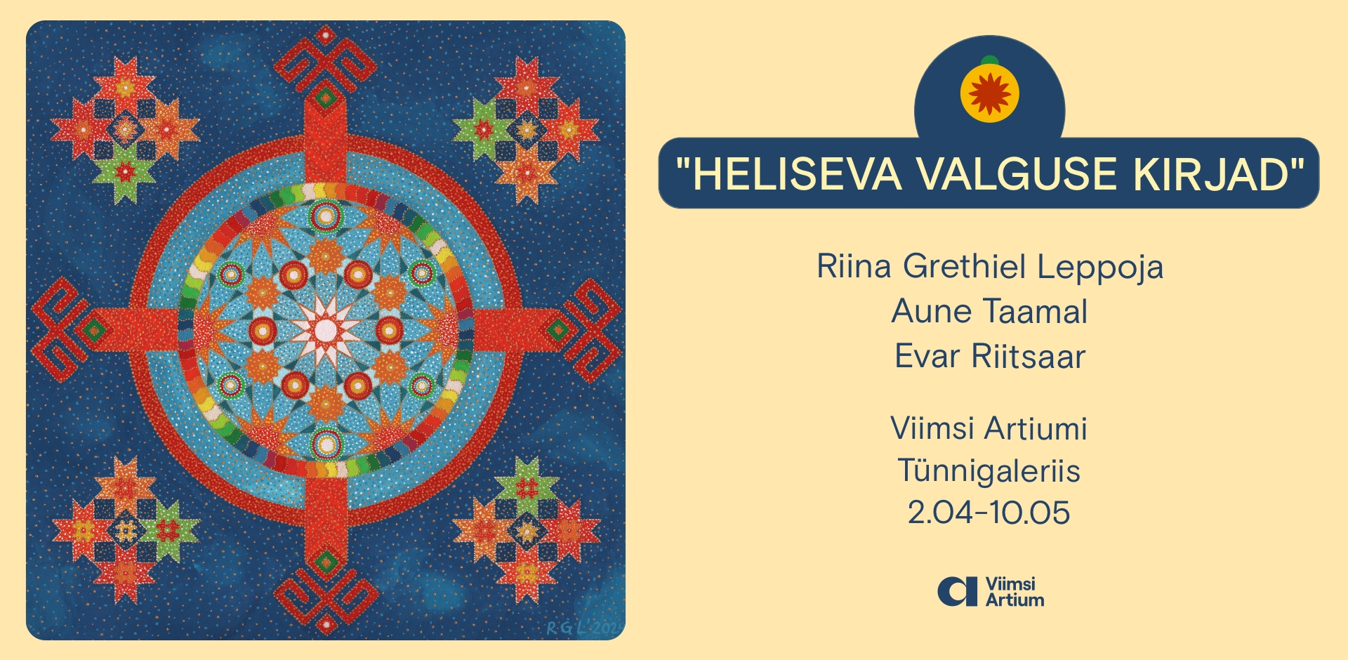 „Heliseva valguse kirjad” on näitus märkide, sümbolite ja arhetüüpide keelest, mida pole vaja analüüsida, vaid vahetult kogeda. Siin kohtuvad geomeetrilised vormid, sakraalsed sümbolid, pärimuslikud ornamendid ja intuitiivselt sündinud mustrid – mitte dekoratsioonina, vaid keelena, mis eelneb sõnadele. Need on märgid, mis ei selgita, vaid loovad resonantsi üksikisiku ja suurema terviku vahel. Ka vormid ei jutusta oma lugu lineaarselt, vaid avavad mõõtmatu ja mitmekihilise tajuruumi, kus nähtav valgus avardub puhtaks ja kõikehõlmavaks teadlikkuseks, kus kuuldavad helid kannavad meid kirjeldamatusse vibratsioonide maailma ning kus kiri ei ole üksnes informatsioon, vaid kogetav jälg vibratsioonist, mis jääb teadvusesse, kehasse ja ilmaruumi.